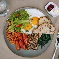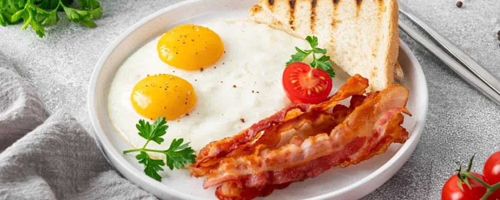 2 Eggs, Bacon, Baked Beans, Hash Brown, Tomato & Toast