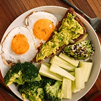 2 Eggs, Avocado, Mushroom, Tomato, Onion, Spinach, Grilled Zucchini & Toast